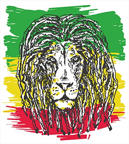 Ambesonne Rasta Duvet Cover Set, Ethiopian Culture Hair Style Lion Head Portrait Grunge Backdrop, Decorative 3 Piece Bedding Set with 2 Pillow Shams, Queen Size, Yellow Green