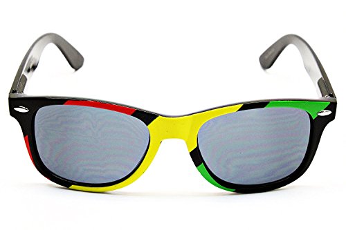 Dweebzilla Rasta Stripes Square Sunglasses Jamaican Colors, Black, Green, Yellow, Red, One Size Fits Most