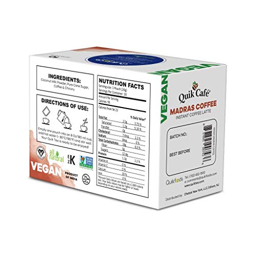 Quik Cafe Vegan 10 Count Instant Coffee Packets | All Natural, Non GMO, Vegan Certified | Convenient & Easy Dairy Free Instant Coffee Mix | Ready To Drink Coffee Powder Mix