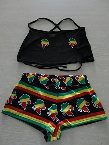 Womens Casual Two Pieces Lace Print Outfits Strap Crop Top Backless Crossover Shirts + Pants Shorts Bandage Club Dress Black S