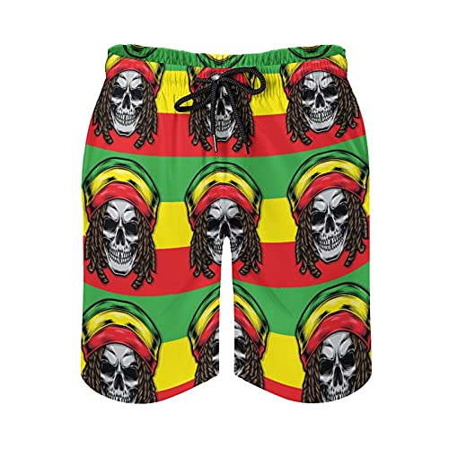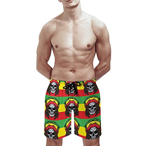 YeneSen Rasta Men’s Board Beach Shorts Swimwear Holiday Party Dreadlocks Skull Rasta Swim Trunks Shorts Shorts